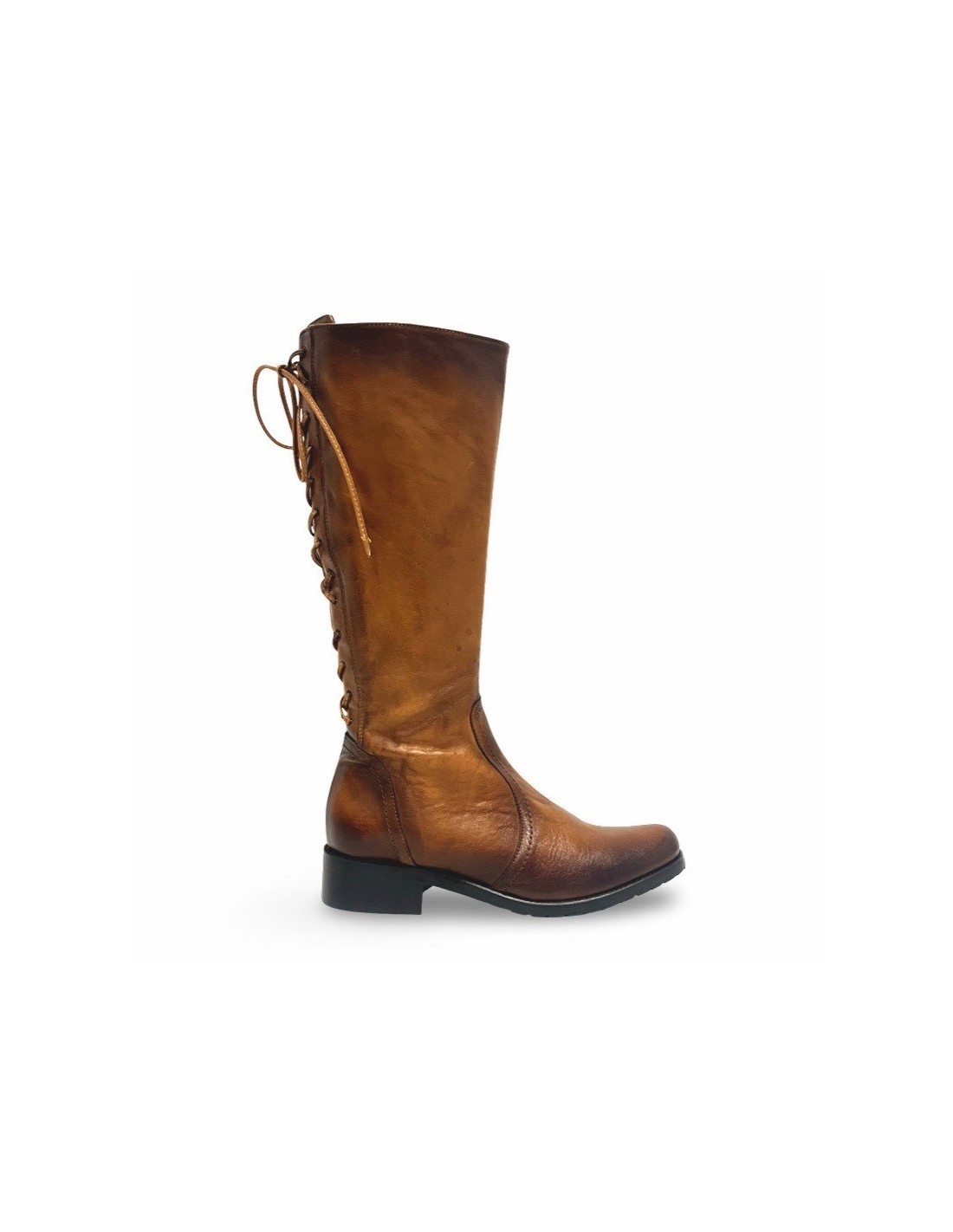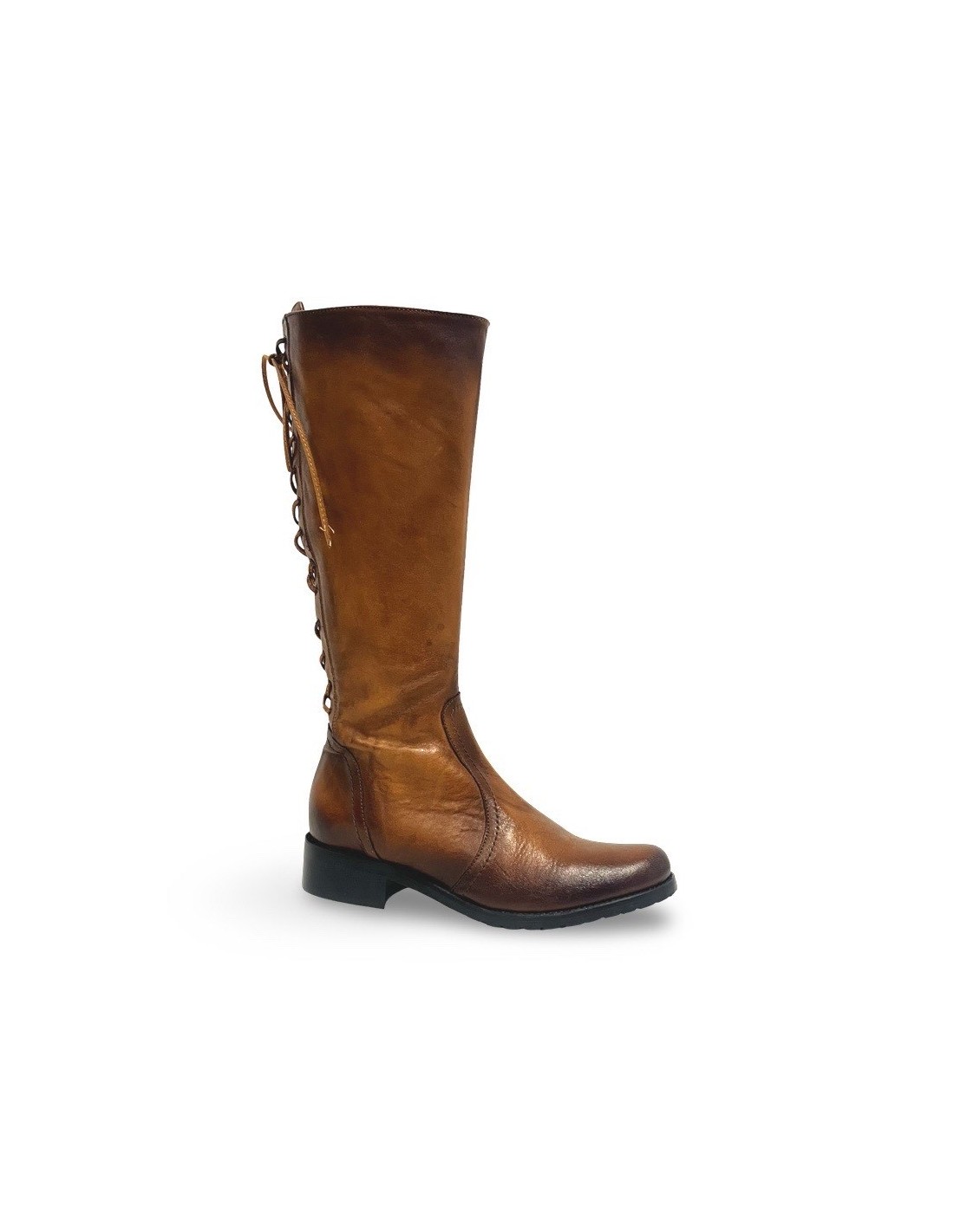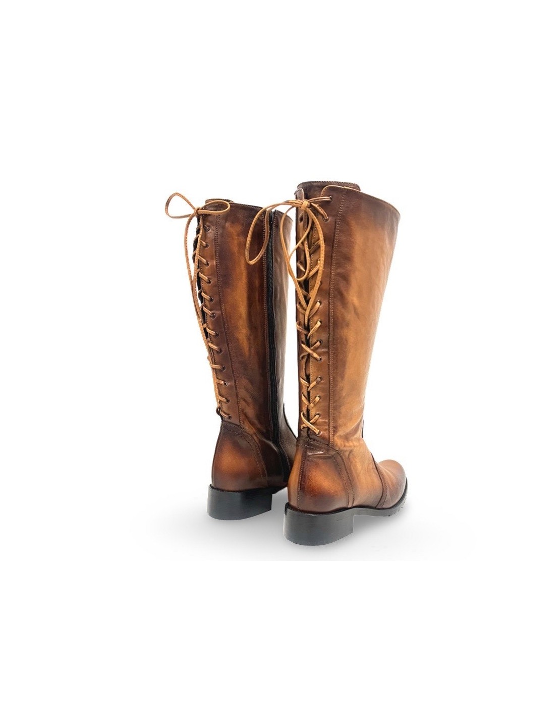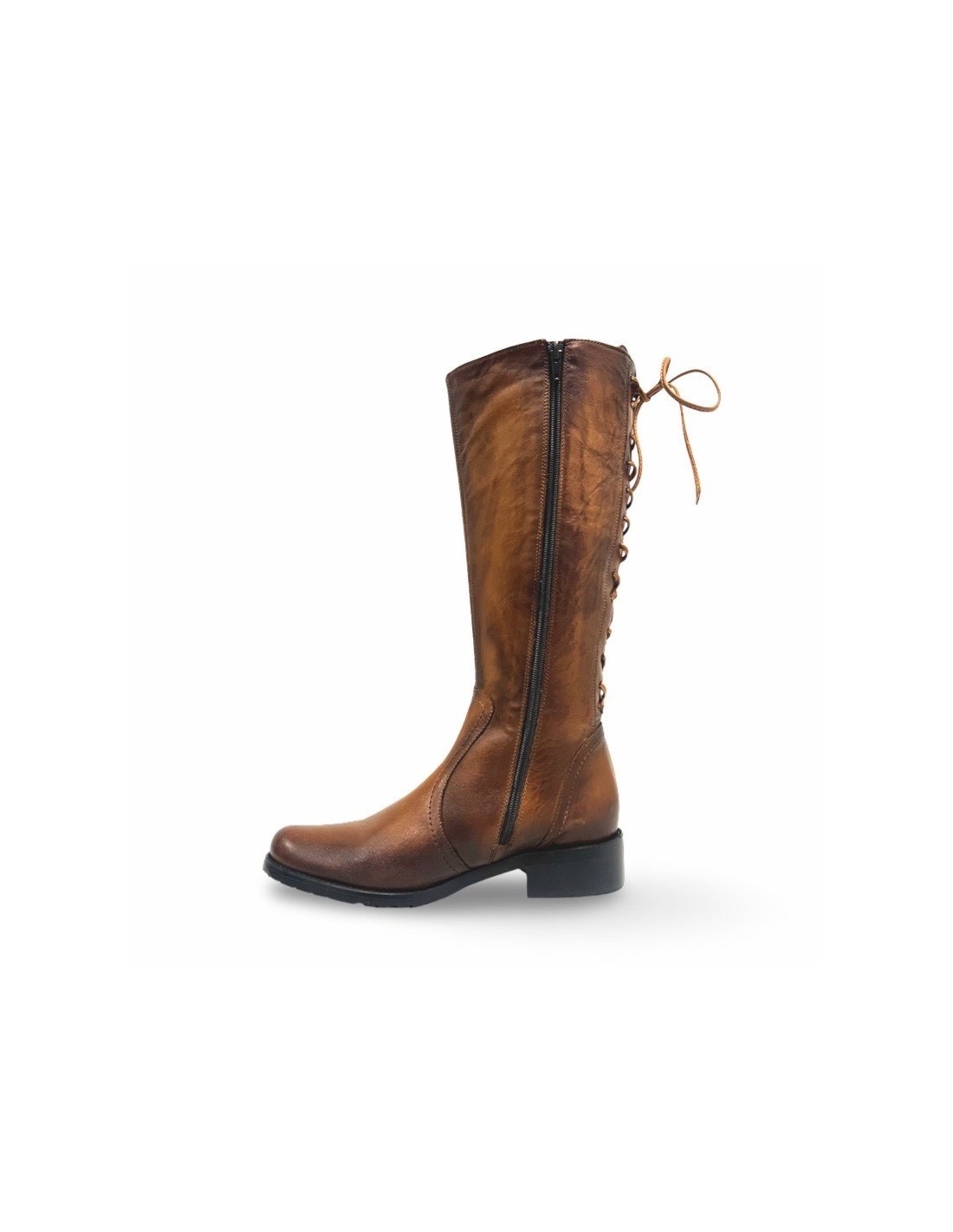 Il Kate è uno stivale classico, realizzato in morbida pelle spazzolata color cuoio, che unisce eleganza e funzionalità. La zip sul lato interno facilita la calzata, mentre i laccetti in pelle lungo tutta la parte posteriore del gambale permettono di regolare la circonferenza per una vestibilità perfetta.