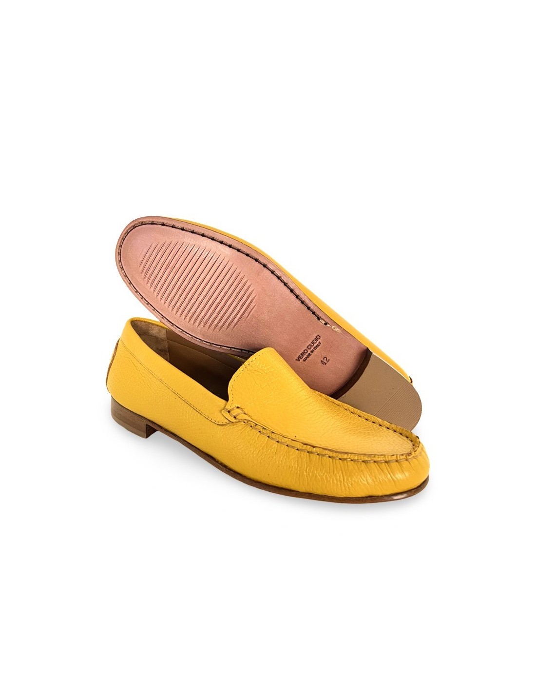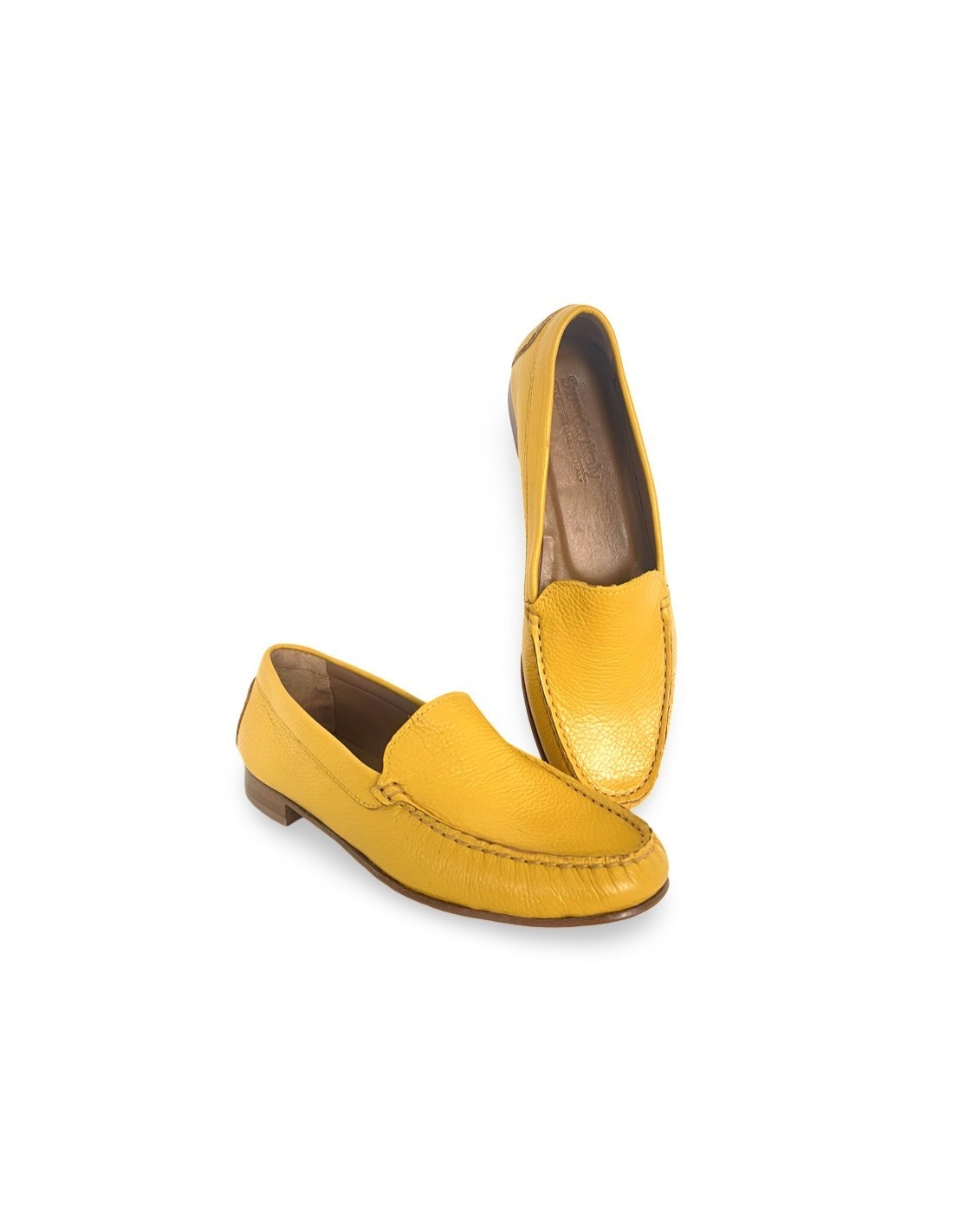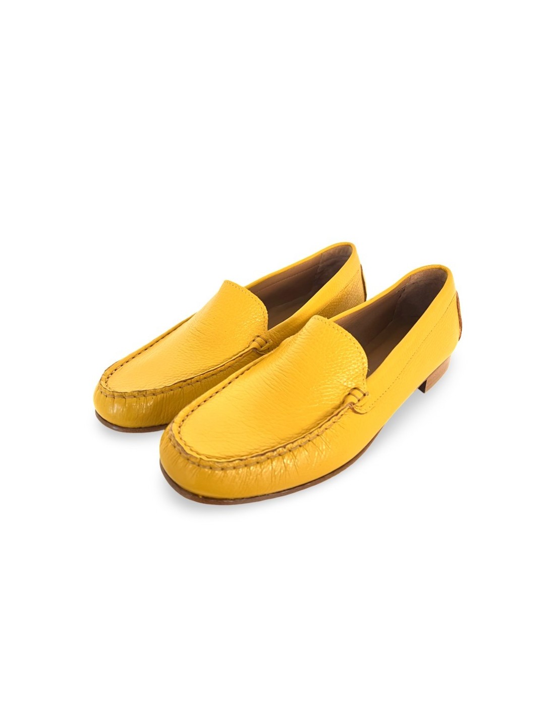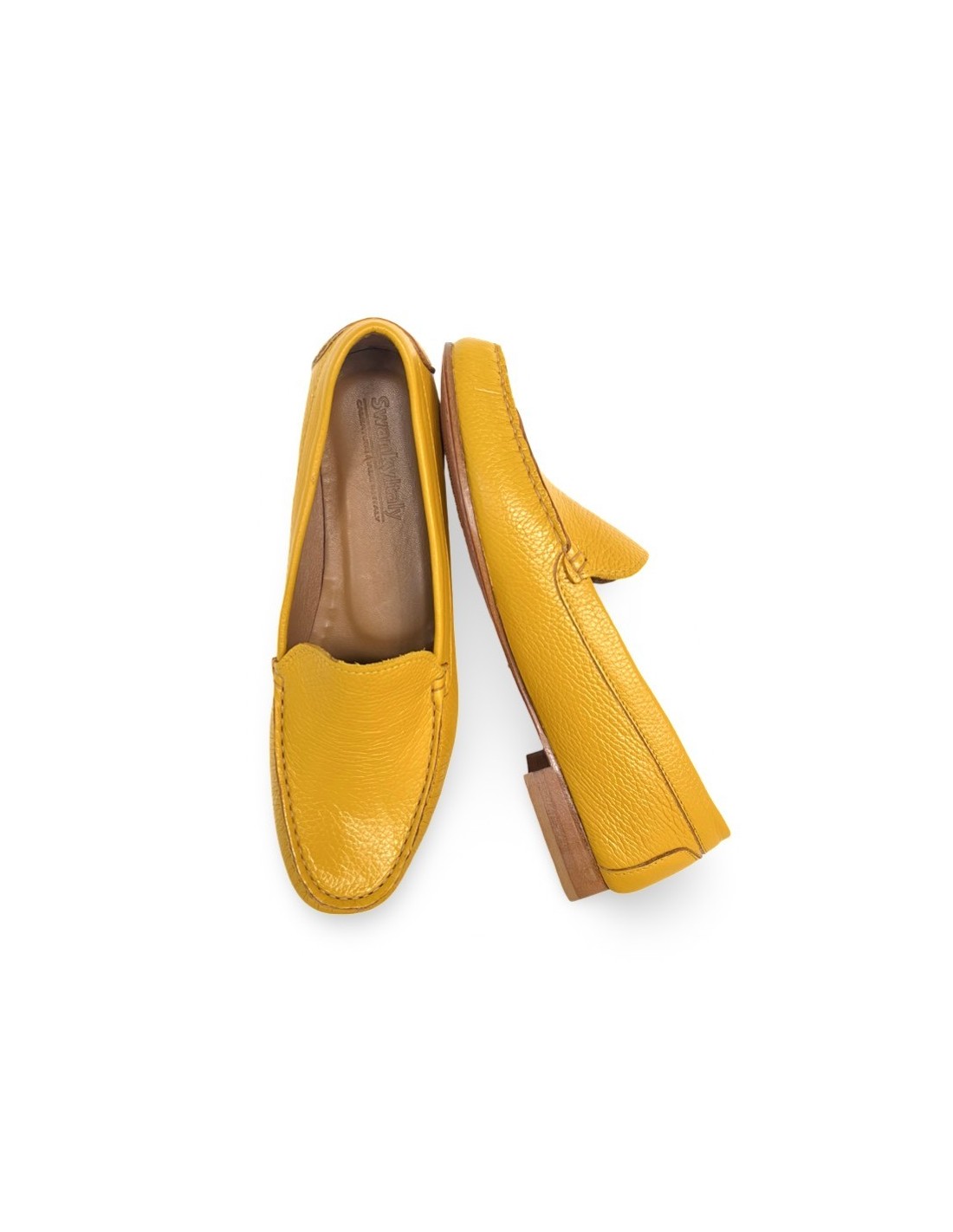 Realizzato in morbida pelle color giallo ocra, questo mocassino unisce eleganza e comodità grazie alla lavorazione artigianale e ai dettagli curati.
