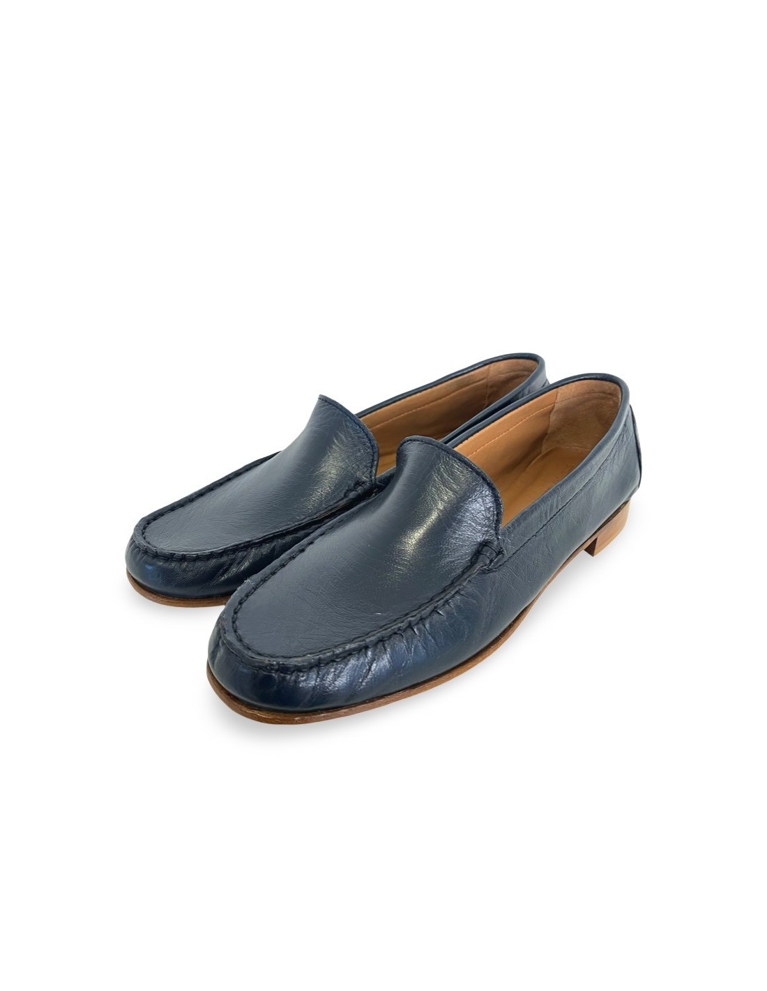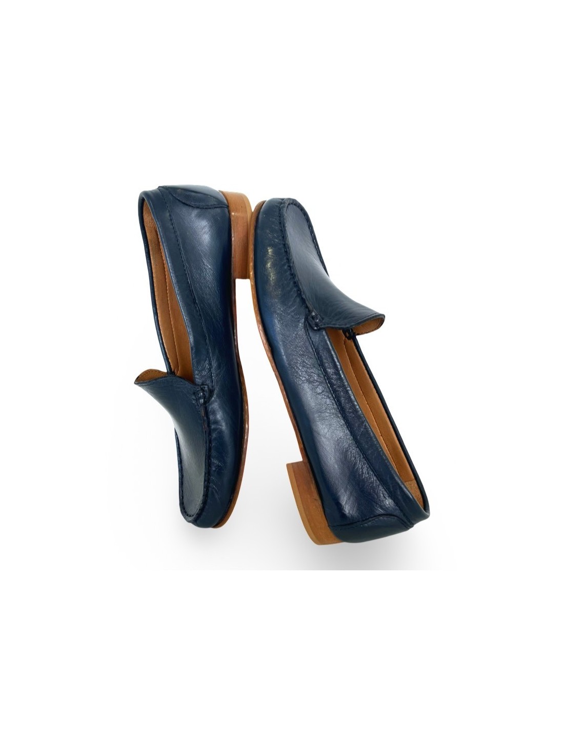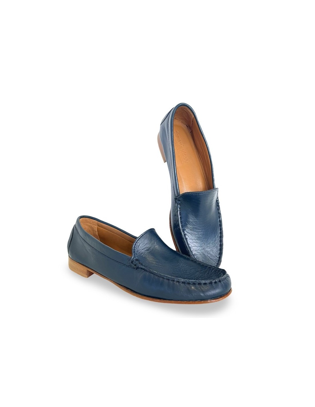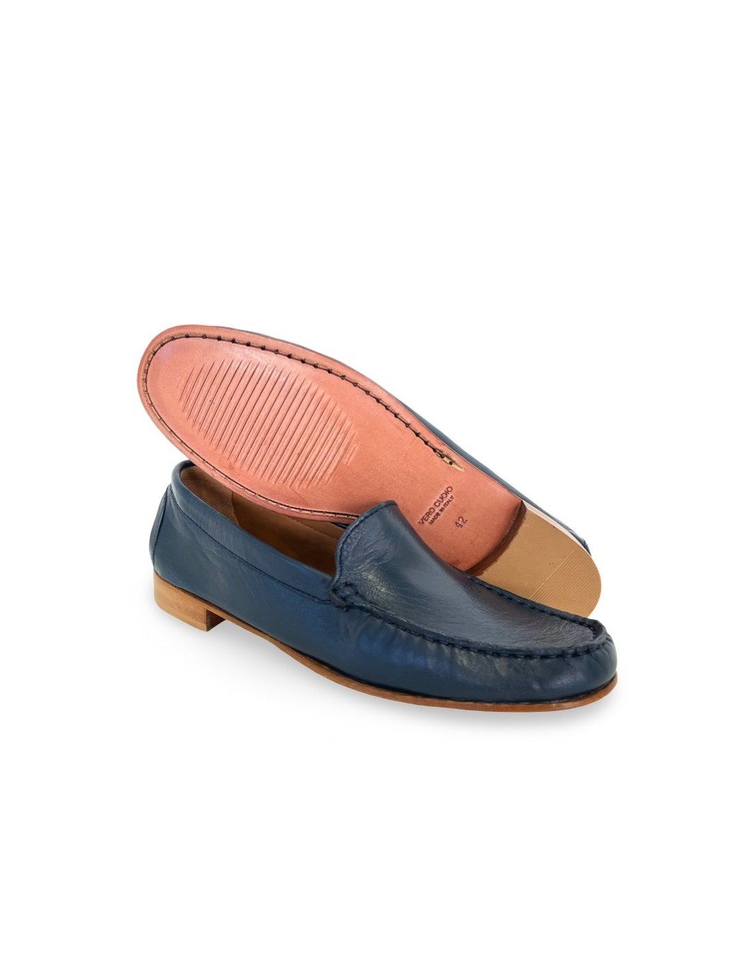 Realizzato in morbida pelle color blu, questo mocassino unisce eleganza e comodità grazie alla lavorazione artigianale e ai dettagli curati.