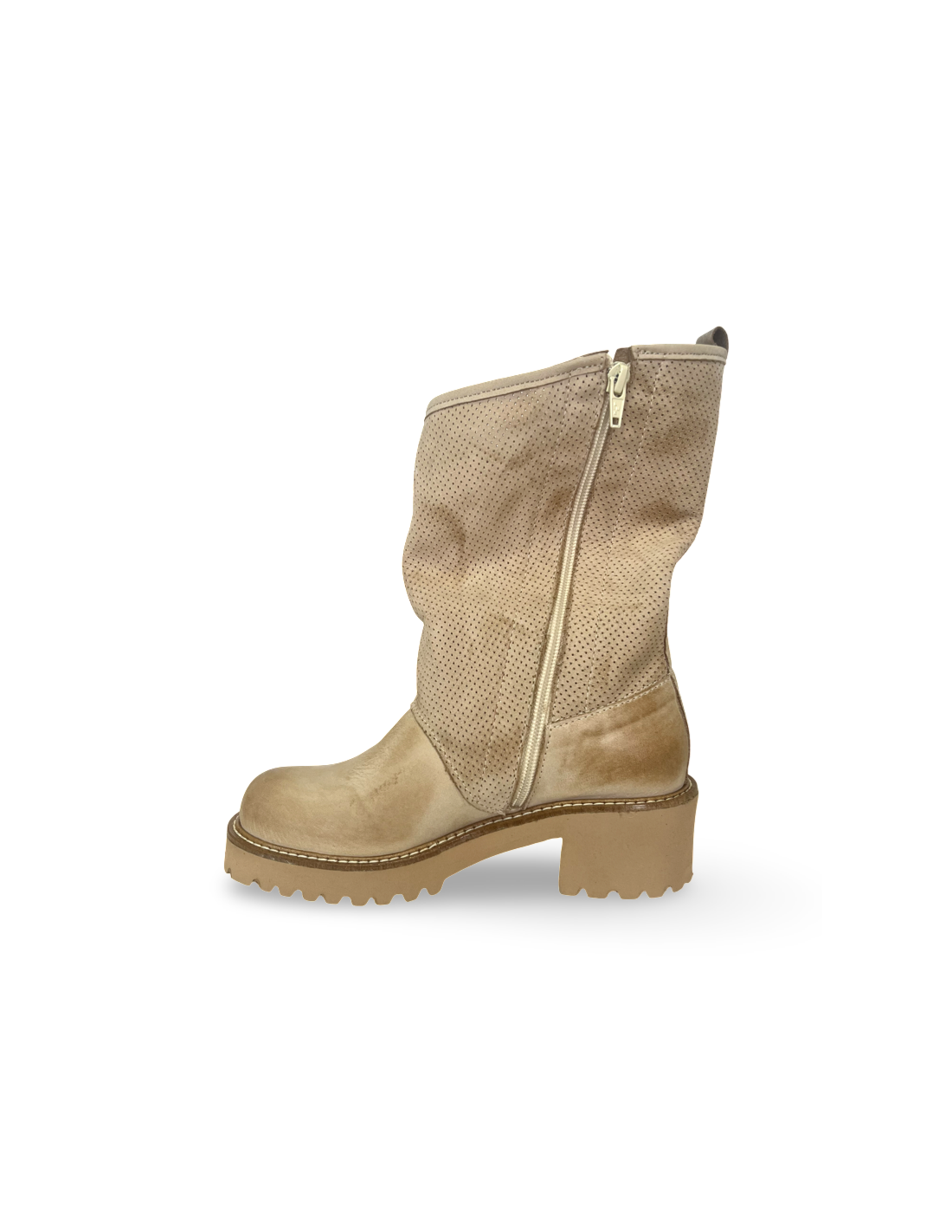 La suola in gomma leggera offre comfort e praticità, mentre la chiusura con zip laterale assicura una calzata facile e veloce.