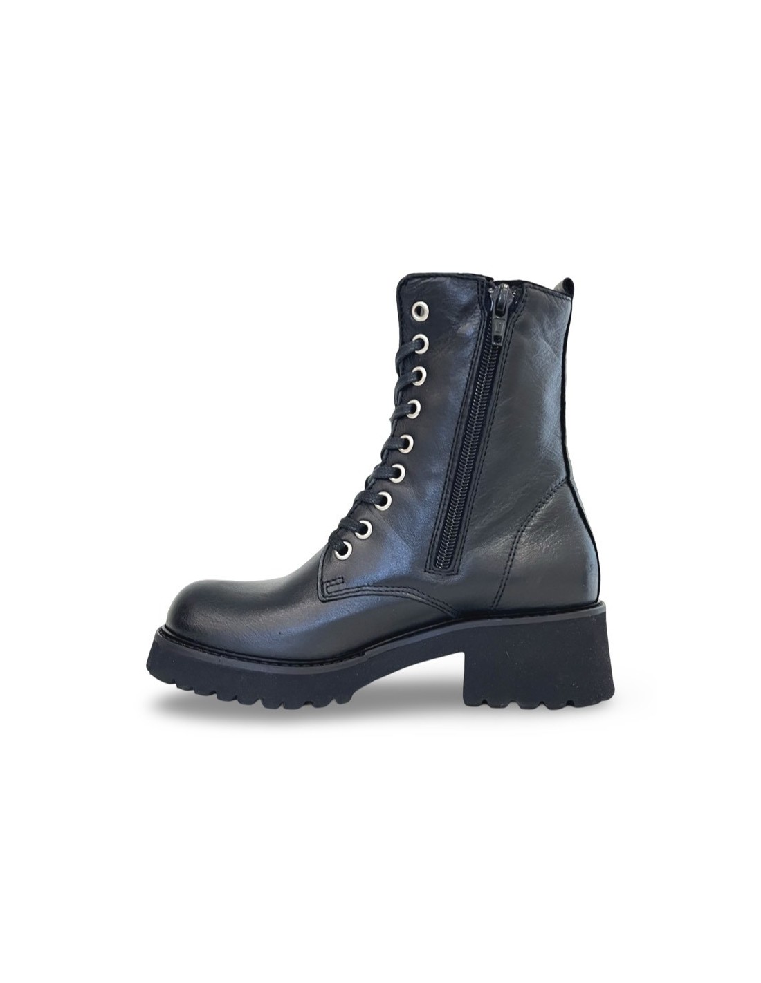 Realizzato in pregiata pelle nera, l'anfibio Holly presenta una fodera interna in pelle che offre comfort e traspirabilità, assicurando una calzata confortevole per tutto il giorno. Il tacco largo di 4.5 cm fornisce stabilità e supporto, mentre la suola con leggero carro armato offre durata e sicurezza su diverse superfici, rendendolo ideale per chi cerca un mix perfetto di stile e praticità.
