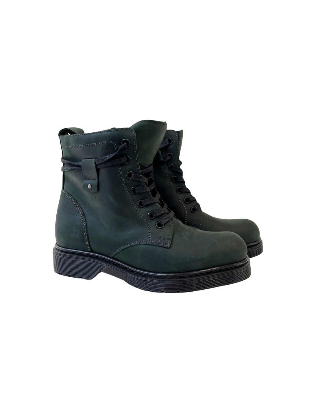 Mila è un anfibio in pelle ingrassata e spazzolata verde, dal carattere deciso ma estremamente versatile.