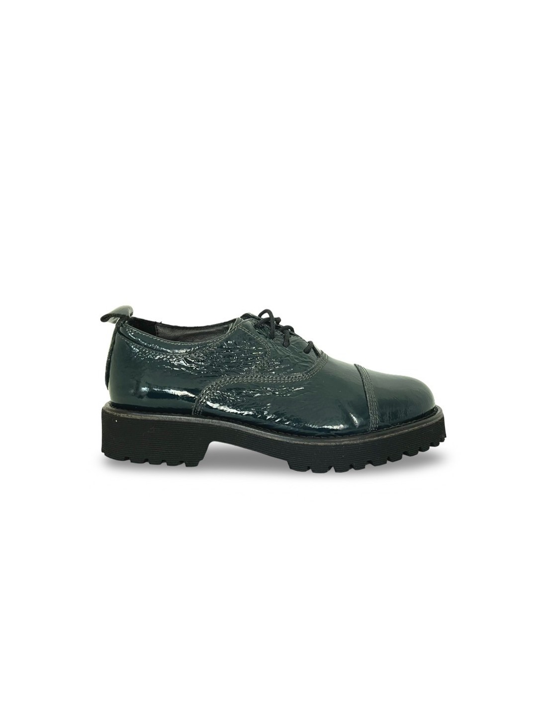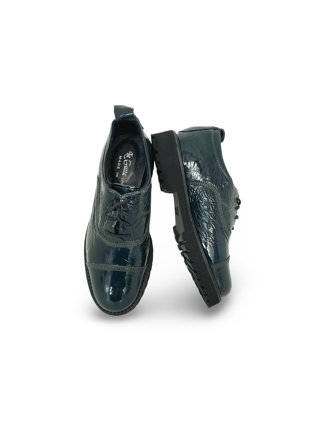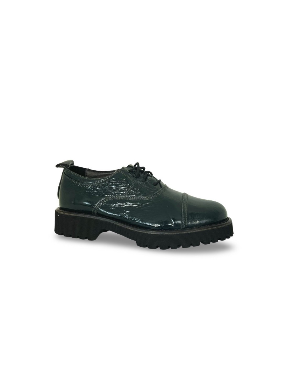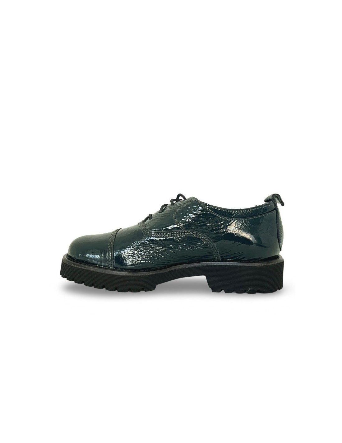 La francesina "Ludo" è realizzata in morbida naplack (pelle verniciata) nel raffinato colore verde bottiglia. Caratterizzata da una punta arrotondata, ha una suola in gomma di 3 cm con plateau di 2 cm per offrire stabilità e comfort. La fodera in pelle assicura una calzata piacevole e durevole.
