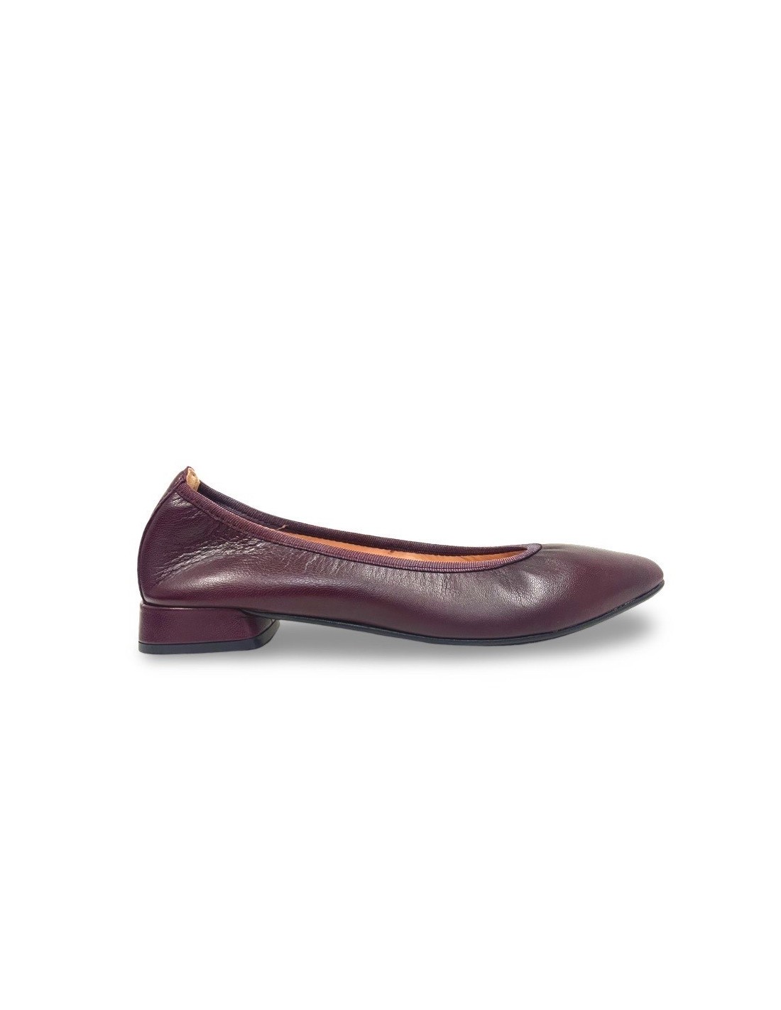 Carola: eleganza e comfort si incontrano in questa rivisitazione della classica ballerina. Realizzata in morbida pelle bodeaux, presenta una punta leggermente affusolata che slancia la silhouette mantenendo uno stile raffinato e senza tempo. Il tacco trapezoidale di 2.5 cm garantisce stabilità e un tocco moderno, mentre il leggero elastico sul bordo assicura una calzata avvolgente e confortevole.