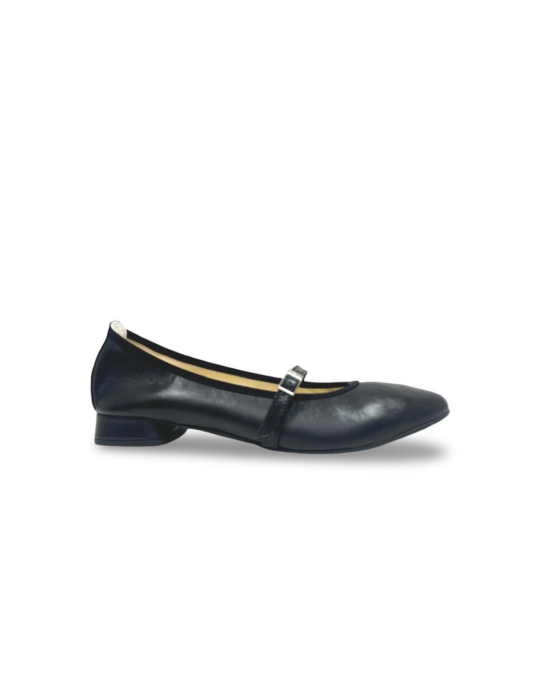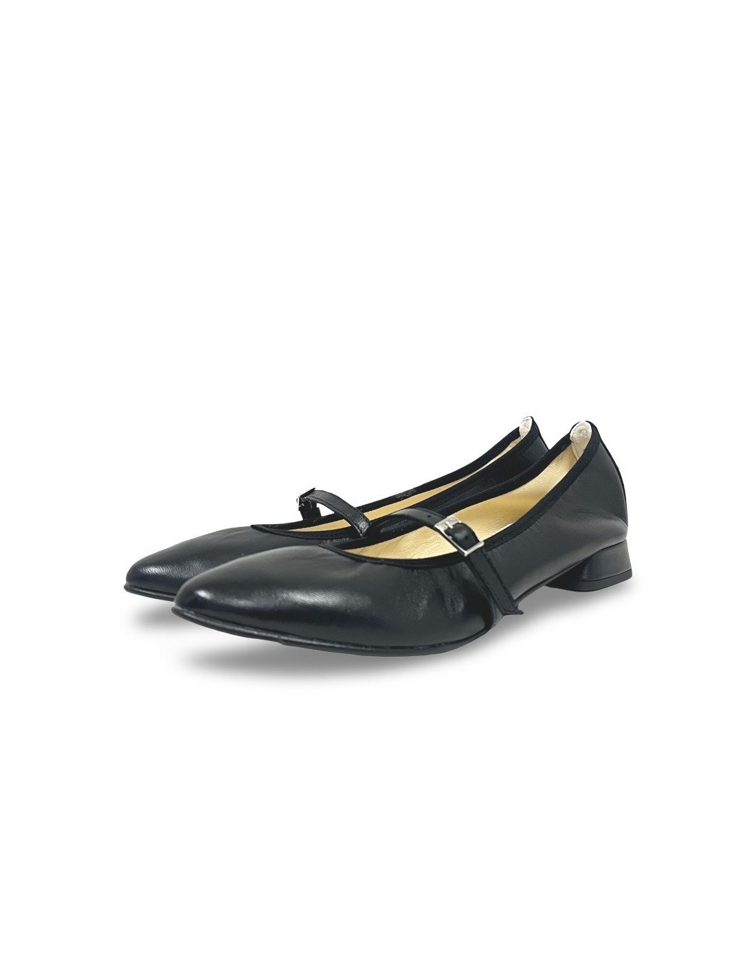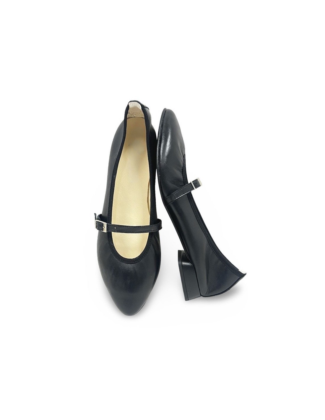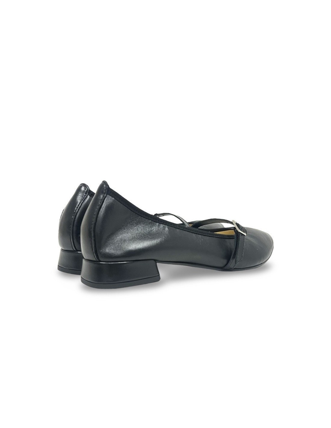Licia: eleganza e comfort si incontrano in questa rivisitazione della classica ballerina con un grazioso cinturino regolabile. Realizzata in morbida pelle nera, presenta una punta leggermente affusolata che slancia la silhouette mantenendo uno stile raffinato e senza tempo. Il tacco trapezoidale di 2.5 cm garantisce stabilità e un tocco moderno, mentre il leggero elastico sul bordo assicura una calzata avvolgente e confortevole.