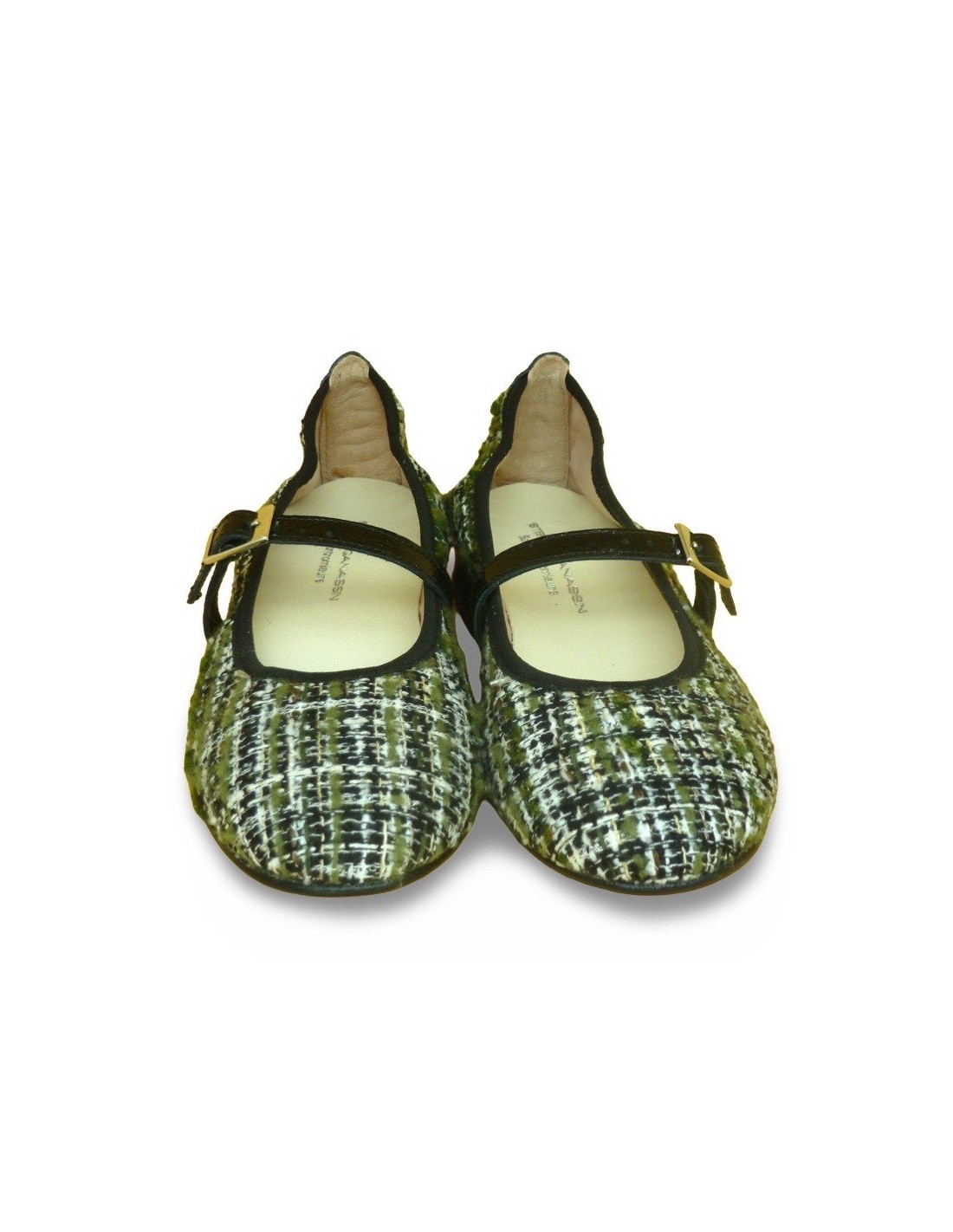 Questa ballerina è un'elegante combinazione di raffinatezza e comfort, pensata per chi desidera un look sofisticato senza rinunciare alla praticità. La tomaia è realizzata in un tessuto intrecciato che sfuma nei toni delicati del muschio, una tonalità verde calda che conferisce un tocco naturale ed elegante. La lavorazione intrecciata aggiunge una dimensione visiva interessante e un aspetto ricercato.