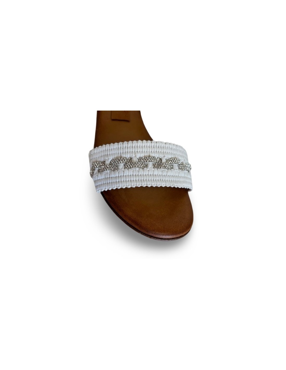 Delia è un sandalo elegante con cinturino, pensato per valorizzare il piede con delicatezza e luminosità. Realizzato in vera pelle di vitello bianca, è impreziosito da una fascetta frontale in tessuto decorata con mignon di strass, che dona un tocco raffinato e femminile. La fodera e il sottopiede in vera pelle assicurano comfort e morbidezza a ogni passo. Il tacco da 2 cm offre la giusta elevazione senza rinunciare alla comodità, mentre la suola in vero cuoio garantisce qualità e resistenza. Un sandalo sofisticato, perfetto per completare con stile sia look quotidiani che occasioni speciali.
